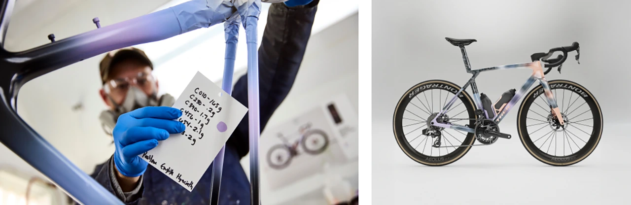 Micah, quien está pintando su propia bicicleta con el diseño jaspeado Dualities, señala que los clientes de Project One suelen ser ciclistas apasionados, y la nueva bicicleta puede ayudarles a expresar su pasión. "Tiene fuerza, dinamismo; realmente llama la atención", revela. "Me alegrará mucho ver a alguien rodando con esa bicicleta".
